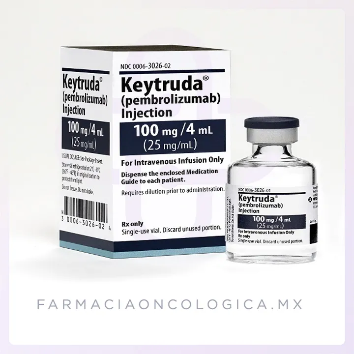 Presentación: Frasco ámpula con 4 mL de solución, equivalente a 100 mg de pembrolizumab.