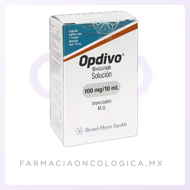 Opdivo es una nivolumab 100 mg solución inyectable, indicada como inmunoterapia para el tratamiento de diversos tipos de cáncer, incluyendo melanoma metastásico, cáncer de pulmón no microcítico, carcinoma de células renales, cáncer de esófago, mesotelioma pleural maligno, cáncer de cabeza y cuello, y linfoma de Hodgkin clásico.