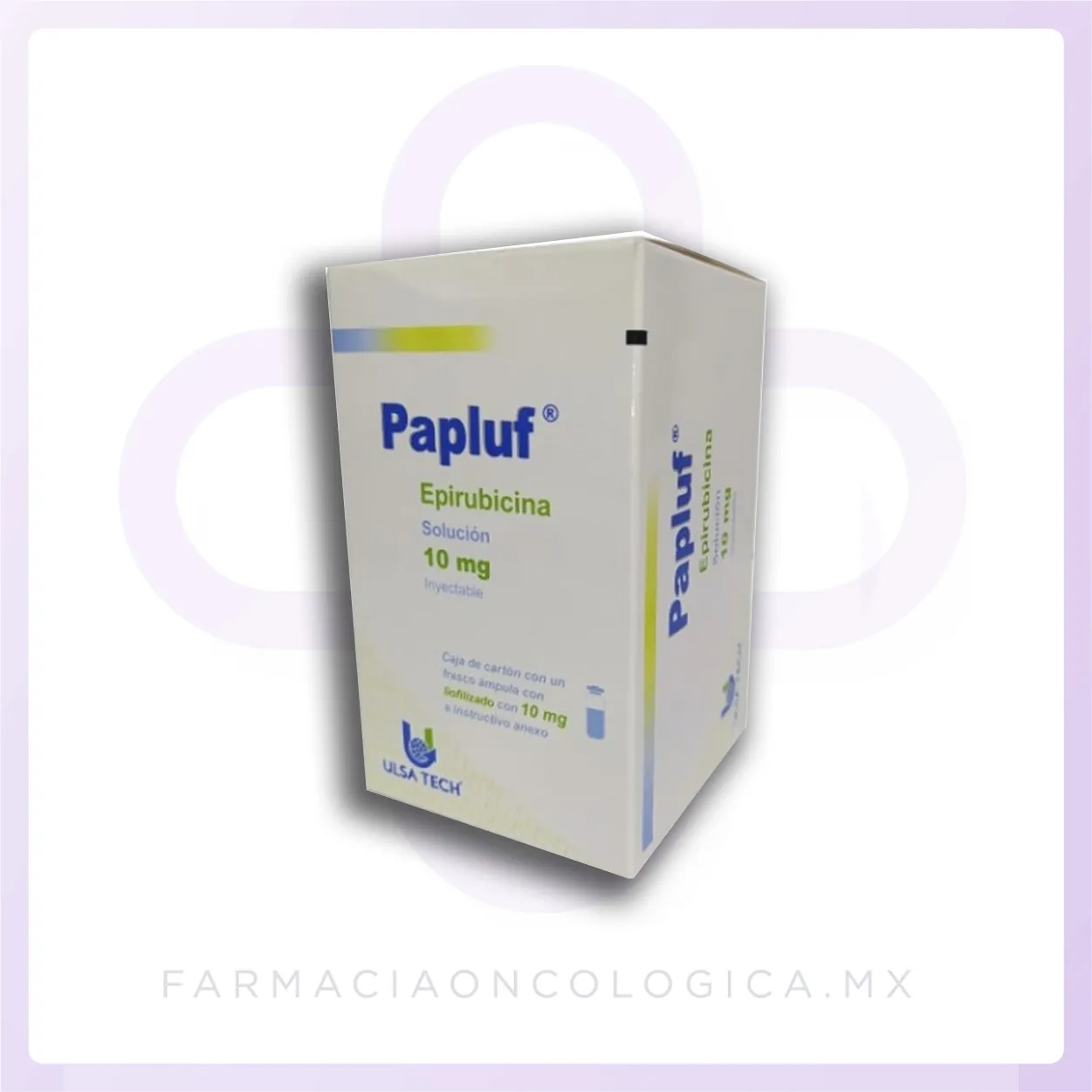 Papluf Epirubicina 10 mg es un medicamento de alta especialidad utilizado en el tratamiento de cáncer de mama, pulmón, vejiga, estómago, sarcomas de tejidos blandos y linfomas. Epirubicina es una antraciclina que actúa intercalándose en el ADN y bloqueando la topoisomerasa II, lo que impide la replicación celular y provoca apoptosis. Se administra por vía intravenosa, como parte de esquemas combinados o en monoterapia, dependiendo del tipo y estadio del cáncer.