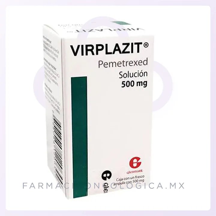Virplazit Pemetrexed 500 mg es un medicamento de alta especialidad utilizado en el tratamiento de cáncer de pulmón no microcítico avanzado y mesotelioma pleural maligno. Pemetrexed es un antimetabolito que bloquea la acción de enzimas clave como la timidilato sintasa y la dihidrofolato reductasa, impidiendo la síntesis de ADN y ARN en células tumorales. Se administra por vía intravenosa y puede combinarse con cisplatino en esquemas de primera línea.